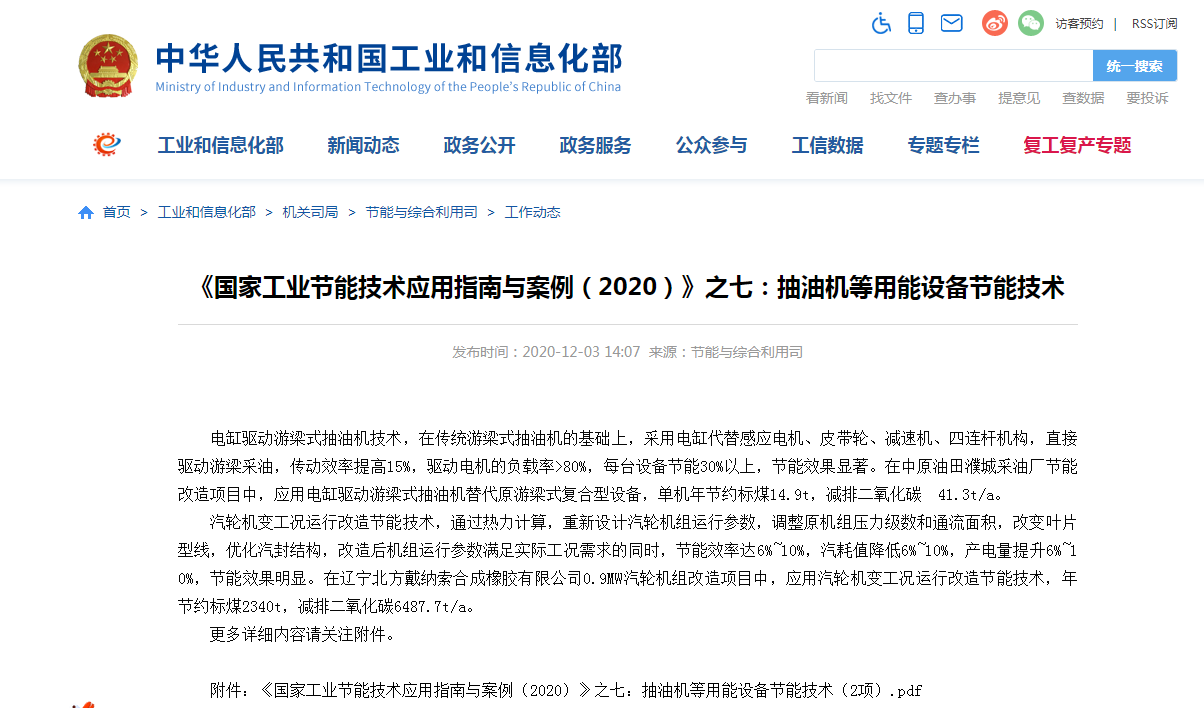 2020年12月3日,國家工業(yè)和信息化部發(fā)布2020年《國家工業(yè)節(jié)能技術(shù)應(yīng)用指南與案例(2020)》,其中我公司核心節(jié)能技術(shù)“汽輪機變工況運行改造節(jié)能技術(shù)”成功入選。