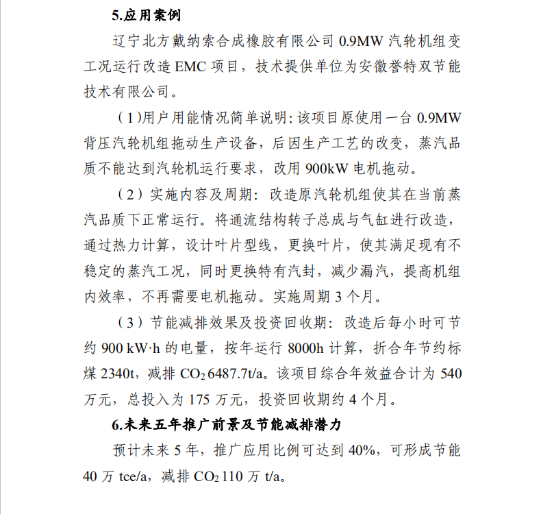 這是繼公司核心技術(shù)“工業(yè)蒸汽輪機通流結(jié)構(gòu)技改提效技術(shù)”,2019年獲得國家工業(yè)和信息化部《國家工業(yè)節(jié)能技術(shù)應(yīng)用指南與案例(2019)》之后,又一次獲得國家級榮譽,同時標(biāo)志著我公司當(dāng)前已有兩項核心工業(yè)節(jié)能技術(shù),正式獲得國家級層面的推廣與市場應(yīng)用支持。