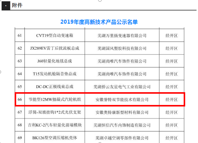 2020年1月6日,安徽省高新技術產(chǎn)品認定名單正式公布。我公司產(chǎn)品節(jié)能型12MW抽凝式汽輪機組喜獲認定,這次獲得高新技術產(chǎn)品認定再一次驗證了安徽譽特雙的卓越品質(zhì),同時也是對我司產(chǎn)品權(quán)威的肯定!