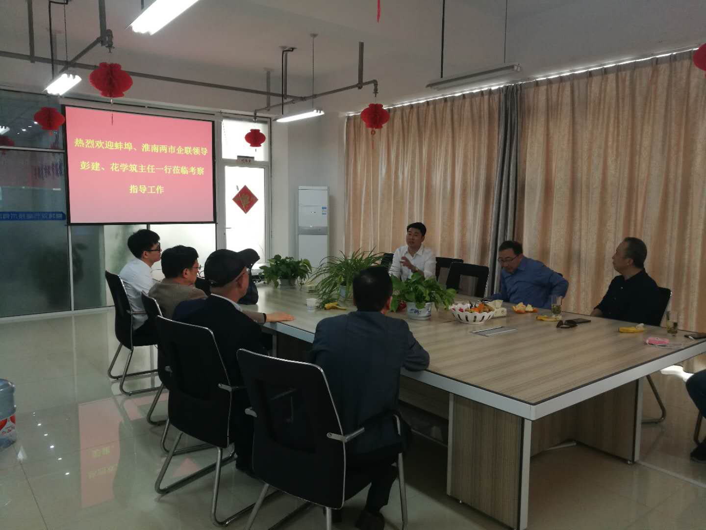 4月20日,蚌埠、淮南兩市企業(yè)聯(lián)合會領導彭建、花學筑主任一行蒞臨我公司考察指導工作,市經(jīng)信委、創(chuàng)業(yè)園區(qū)相關領導與公司董事長車延花熱情接待了彭建、花學筑主任一行。
