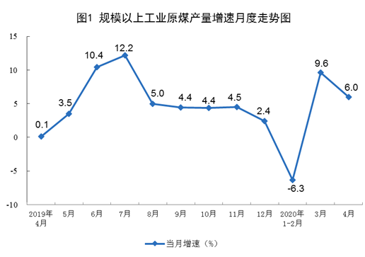 北極星火力發電網訊:4月份,規模以上工業原煤生產保持較快增長,原油、電力生產由降轉增,天然氣生產加快。
