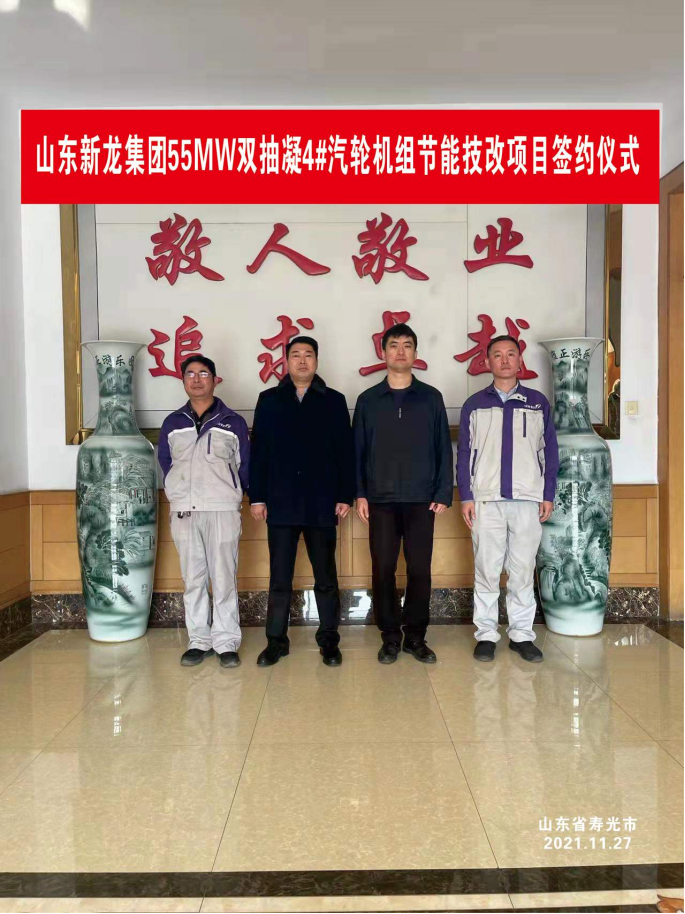 熱烈祝賀公司簽訂山東新龍集團(tuán)有限公司55MW雙抽凝4#汽輪機(jī)組通流結(jié)構(gòu)技改項(xiàng)目