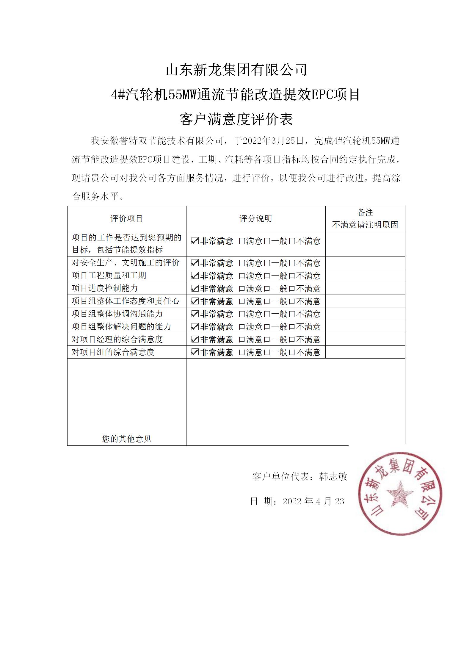 山東新龍集團(tuán)55MW汽輪機(jī)4#機(jī)組通流結(jié)構(gòu)技改提效項(xiàng)目 順利通過工程驗(yàn)收節(jié)能提效比例達(dá)7.72%遠(yuǎn)超合同約定
