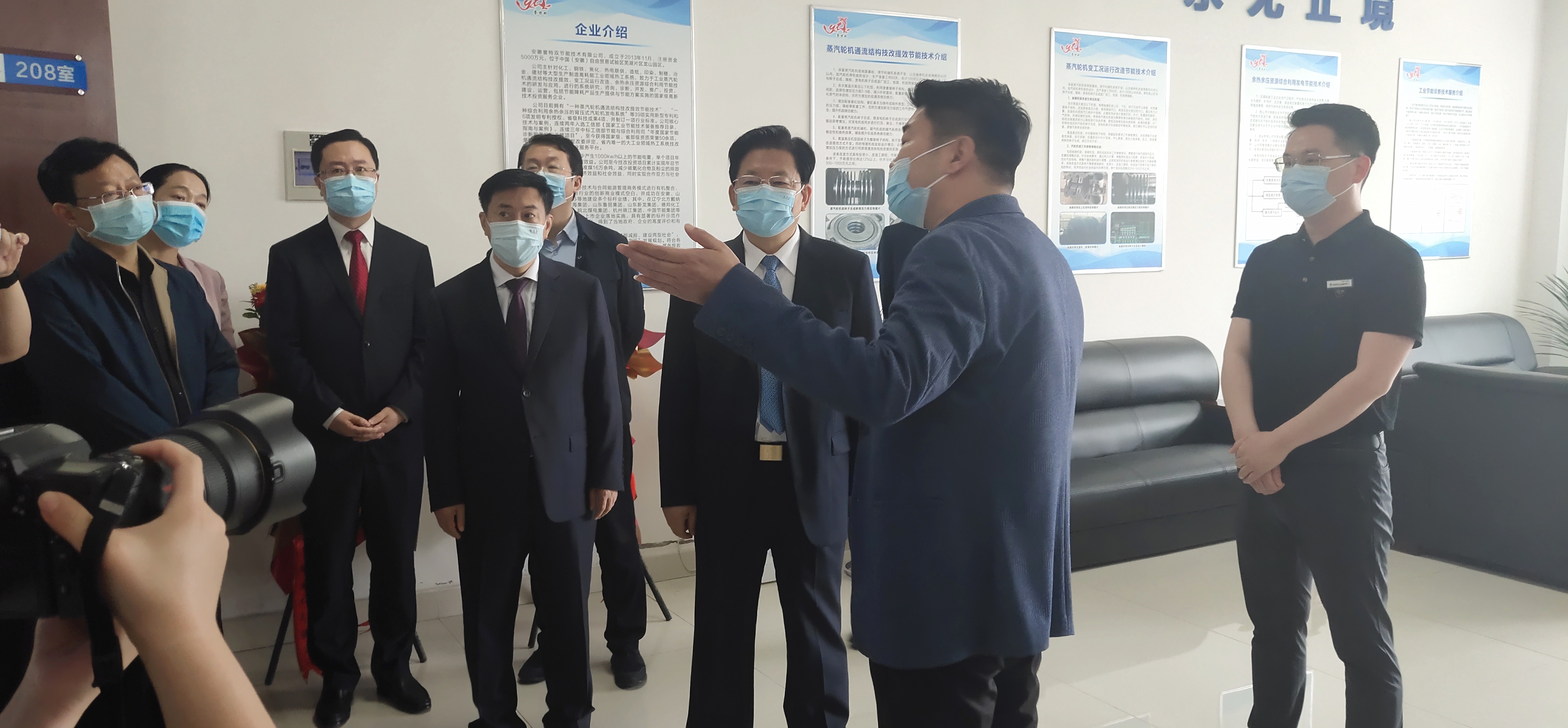 我公司董事總經理袁克向朱書記、王市長等領導一行詳細匯報了公司發展歷程,介紹當前主營業務、客戶情況、商務模式、榮譽資質和取得的經濟與社會效益,受到了朱書記、王市長等領導的重點關注和高度評價。
