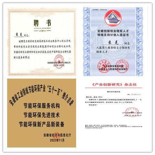 2022年公司獲得了多項榮譽資質。為企業贏得市場信譽,增加影響力,提升品牌形象:公司入選安徽省“專精特新”中小企業;與安徽信息工程學院合作撰寫產業創新研究項目《數智背景下傳統制造業低碳化轉型路徑研究》將于2023年1月份已在《產業創新研究》雜志社發布;入選2022年蕪湖市雛鷹培育計劃名單;研發項目在蕪湖市科技局成功立項;總經理袁克認定入選安徽省第八批“特支計劃”創新創業領軍人才;入選安徽省節能環保產業:“五個一百”推介目錄;總經理袁克獲聘國家級科創中心”創業導師“榮譽稱號;獲選“安徽省中小企業公共服務示范平臺”與“蕪湖市中小企業公共服務示范平臺”。