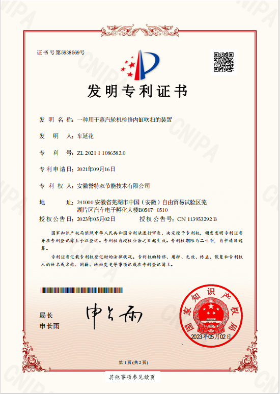 近日,我公司申請的四項發明專利——“一種采用蒸汽輪機的循環發電裝置”、“一種使用蒸汽輪機的發電機”、“一種用于蒸汽輪機檢修內缸吹掃的裝置”、“一種蒸汽輪機的安全散熱器”,經過受理、一次審查和答辯、實質性審查后,獲得國家知識產權局正式授權。